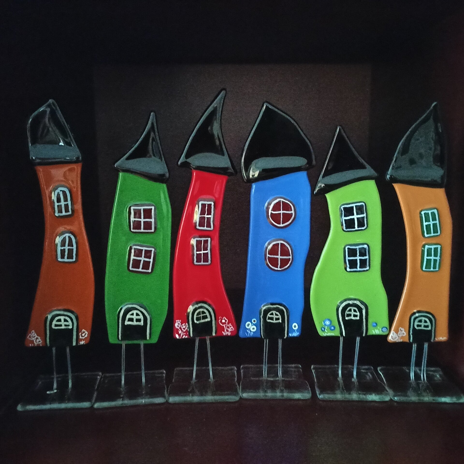 Objecten van antiek vensterglas met verrassende kleuren